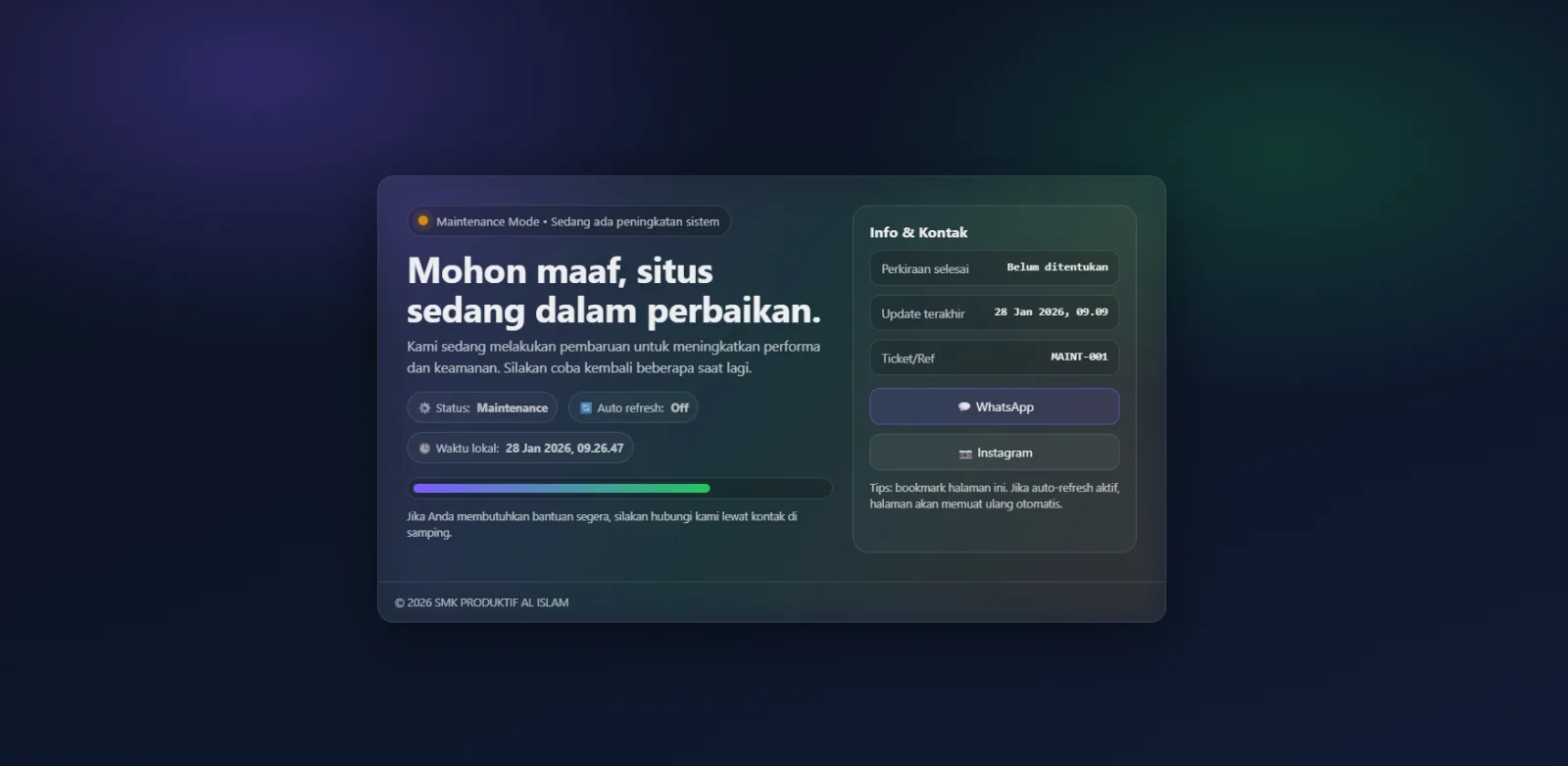 • Langkah 1 — Buat Halaman Maintenance (maintenance.html)